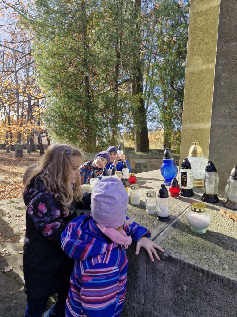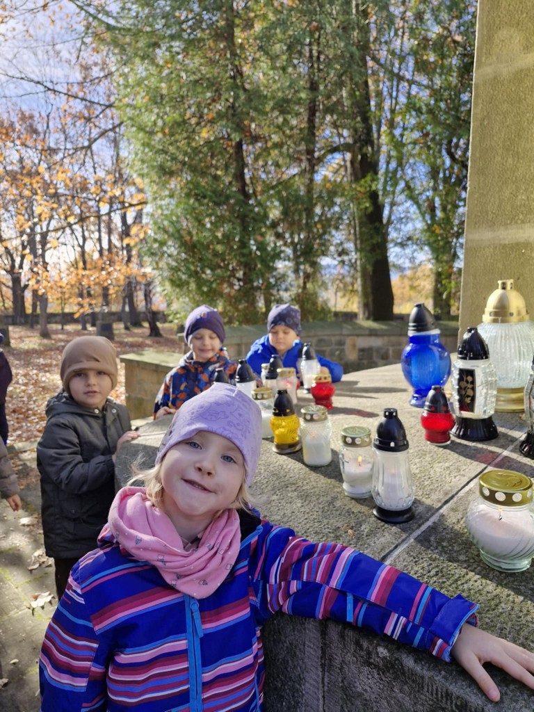 Tuż przed świętem zmarłych, dzieci z naszego przedszkola wraz ze swoimi paniami wybrały się na cmentarz wojskowy nr 91 na Górze Cmentarnej.