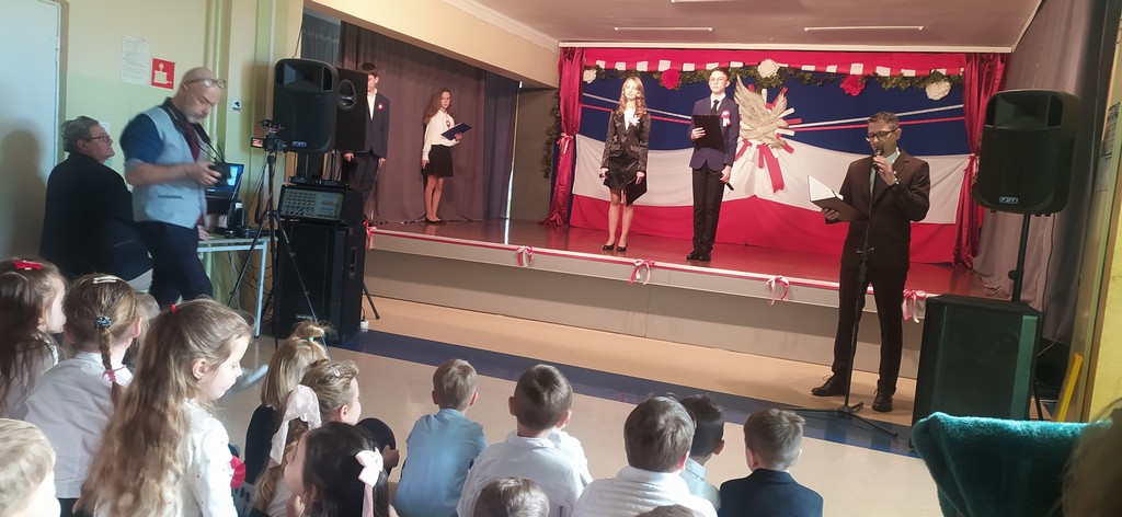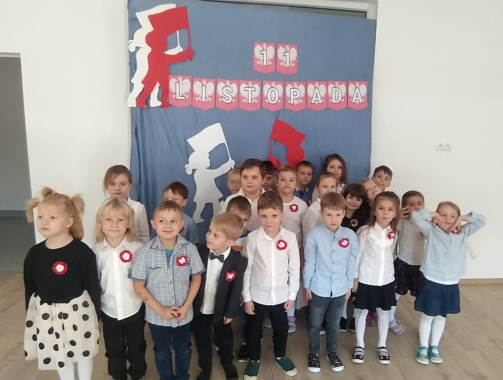 Biało – czerwone dekoracje świadczyły o zbliżającym się święcie narodowym. Dzieci poznały „Legendę o powstaniu państwa polskiego” oraz polskie symbole narodowe. Dla utrwalenia wiadomości o naszej ojczyźnie dzieci oglądały zdjęcia i fotografie najważniejszych miejsc w Polsce, wykonały orła oraz biało – czerwone kotyliony, kolorowały godło polskie oraz wykonały pracę plastyczną w której przedstawiły swoje przemyślenia z czym kojarzy się im słowo ojczyzna.