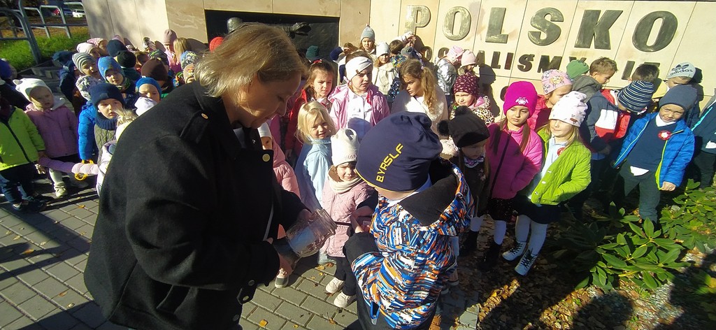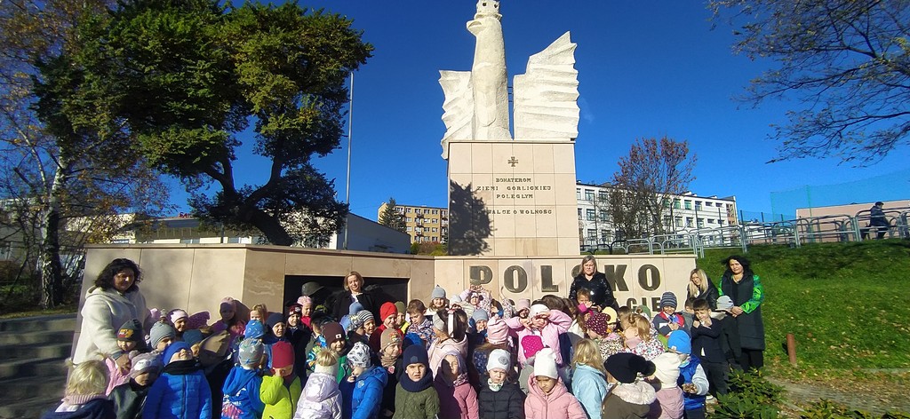 Przedszkolaki z najstarszych dwóch grup wzięły udział w uroczystej akademii w szkole. Po uroczystej akademii dzieci z wszystkich grup udały się pod pomnik Bohaterów Ziemi Gorlickiej, aby zapalić symboliczny znicz dla poległych bohaterów.