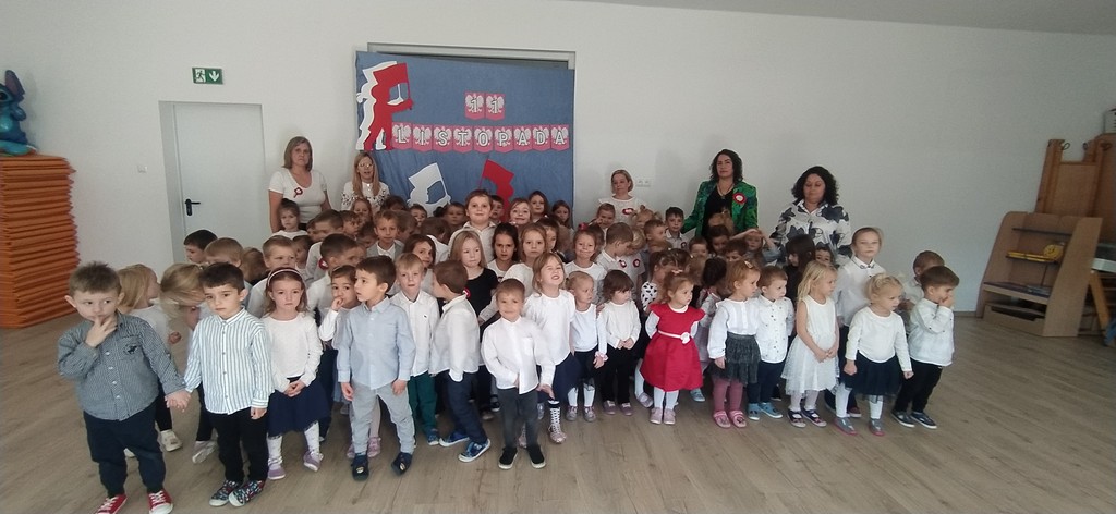 Nasze przedszkole przyłączyło się również po raz kolejny do akcji MEN „Szkoła do hymnu”. W dniu 7 listopada o godzinie 11:11 dzieci uroczyście odśpiewały „Mazurka Dąbrowskiego”. Dzięki tej akcji dzieci utrwaliły słowa i melodię polskiego hymnu oraz kształtowały umiejętności właściwego zachowania się podczas słuchania i śpiewania hymnu narodowego.