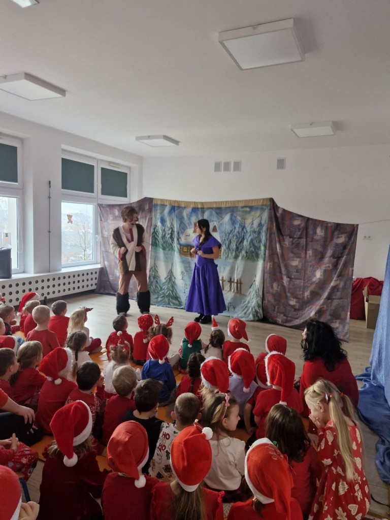 Wtorek drugiego grudnia był wyjątkowym dniem w Przedszkolu nr 8 w Gorlicach Dzieciaczki miały okazję zobaczyć przedstawienie z postaciami z *Krainy* *Lodu*. Istotą występu było pokazanie dzieciom, że w okresie świąt liczy się życzliwość i pomoc innym.