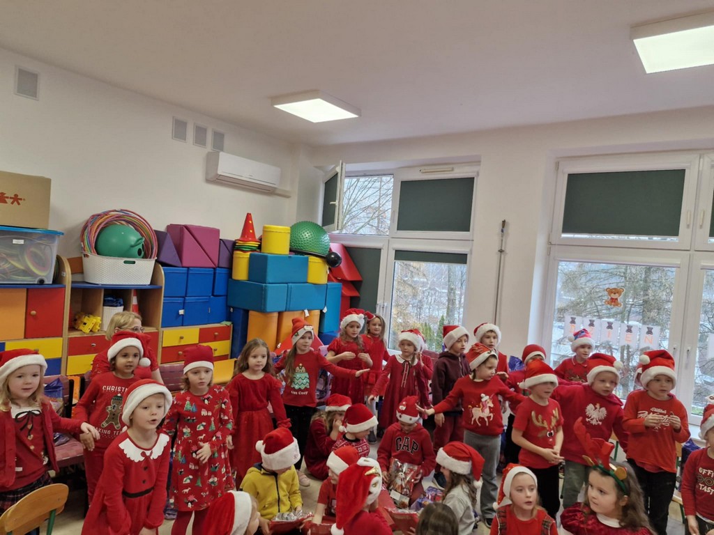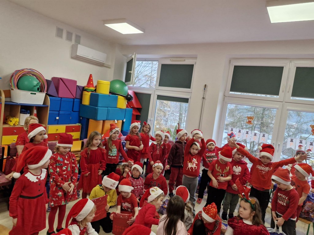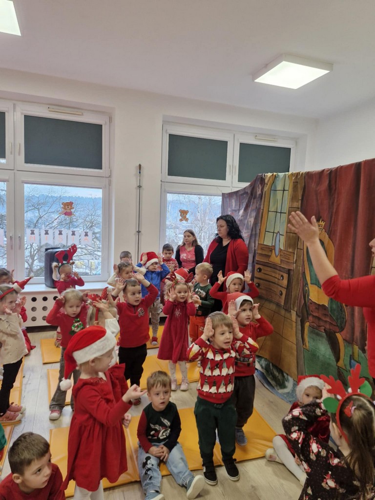 Następnie dzieci zaśpiewały piosenkę i wtedy pojawił się wyczekiwany przez przedszkolaki gość-*Święty Mikołaj*.