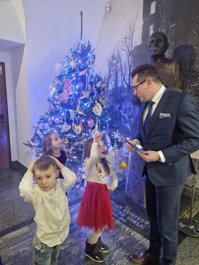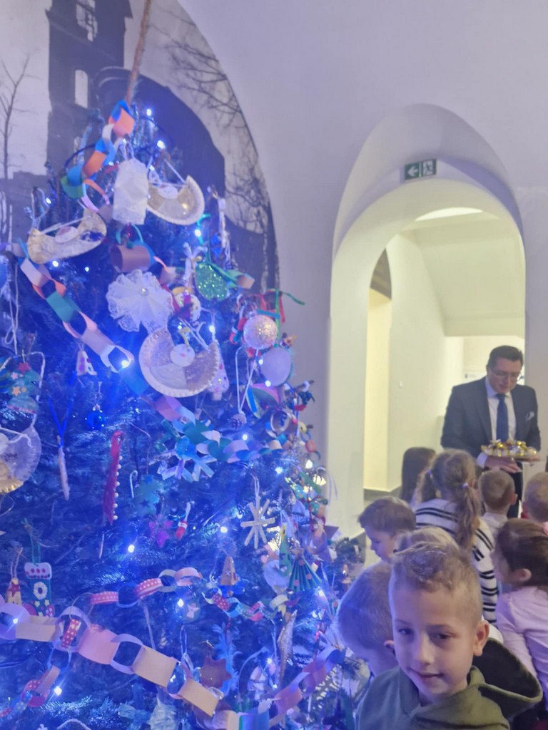 W dniu 17 grudnia przedszkolaki z grupy 5,6 latków zostały zaproszone do Urzędu Miasta, aby własnoręcznie przygotowanymi ozdobami, wsiąść udział w wspólnym ubieraniu choinki. Efekt końcowy wyszedł przepięknie i bajecznie. Sami zobaczcie.