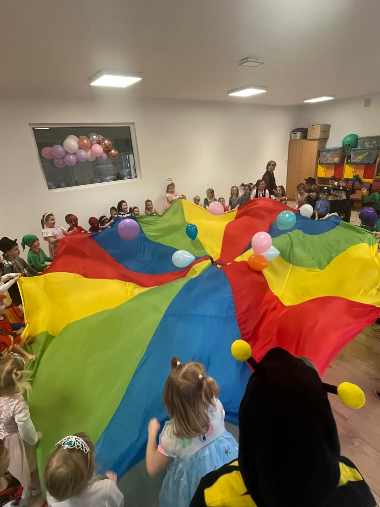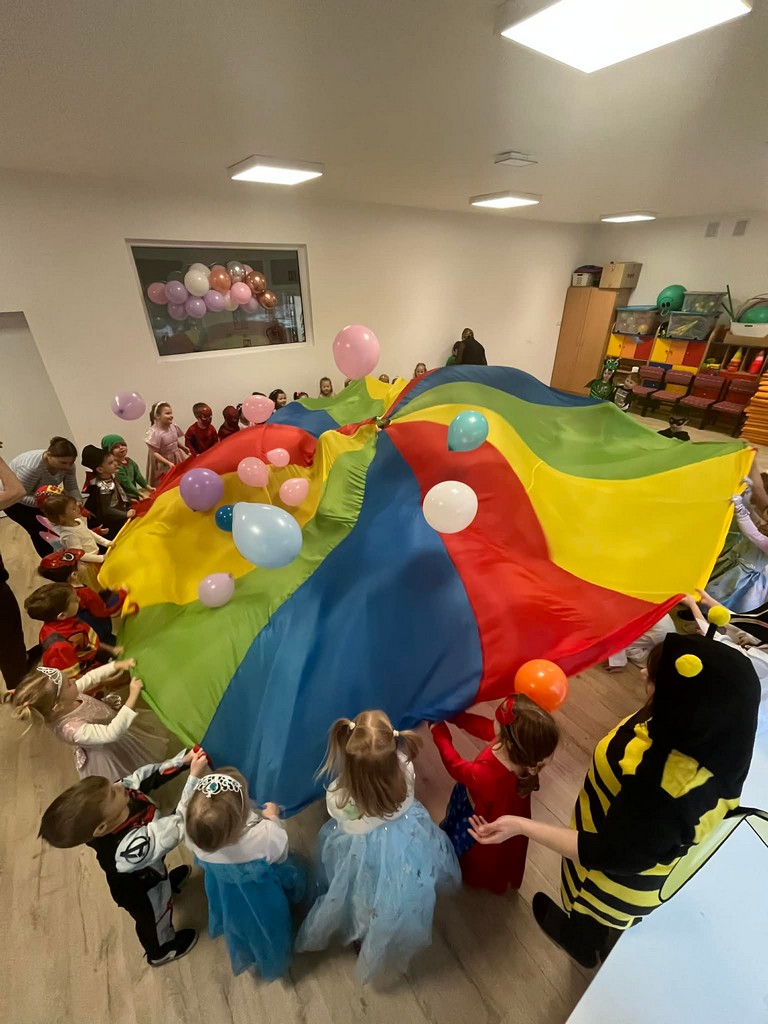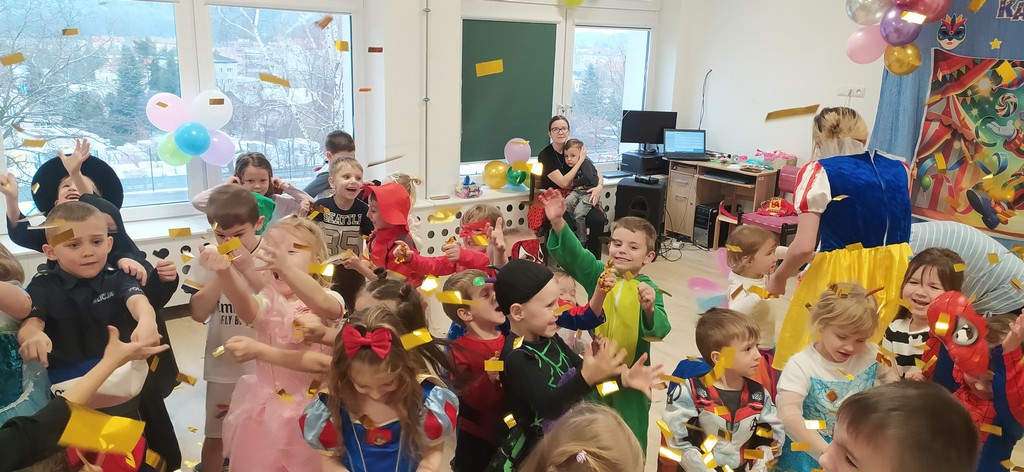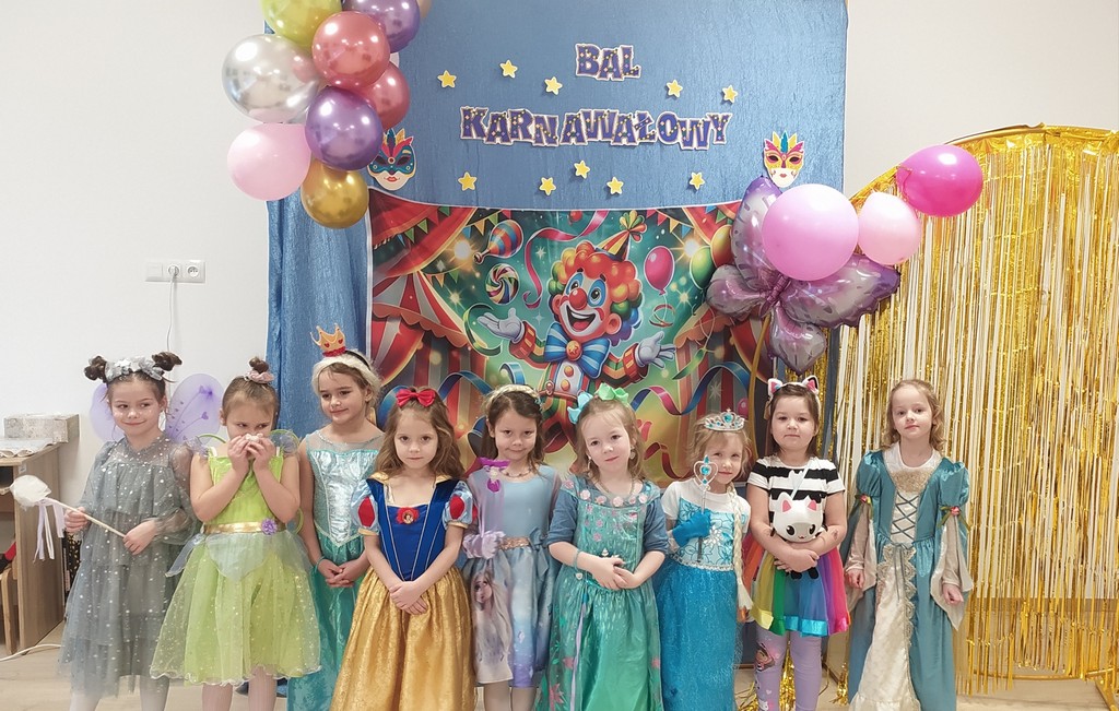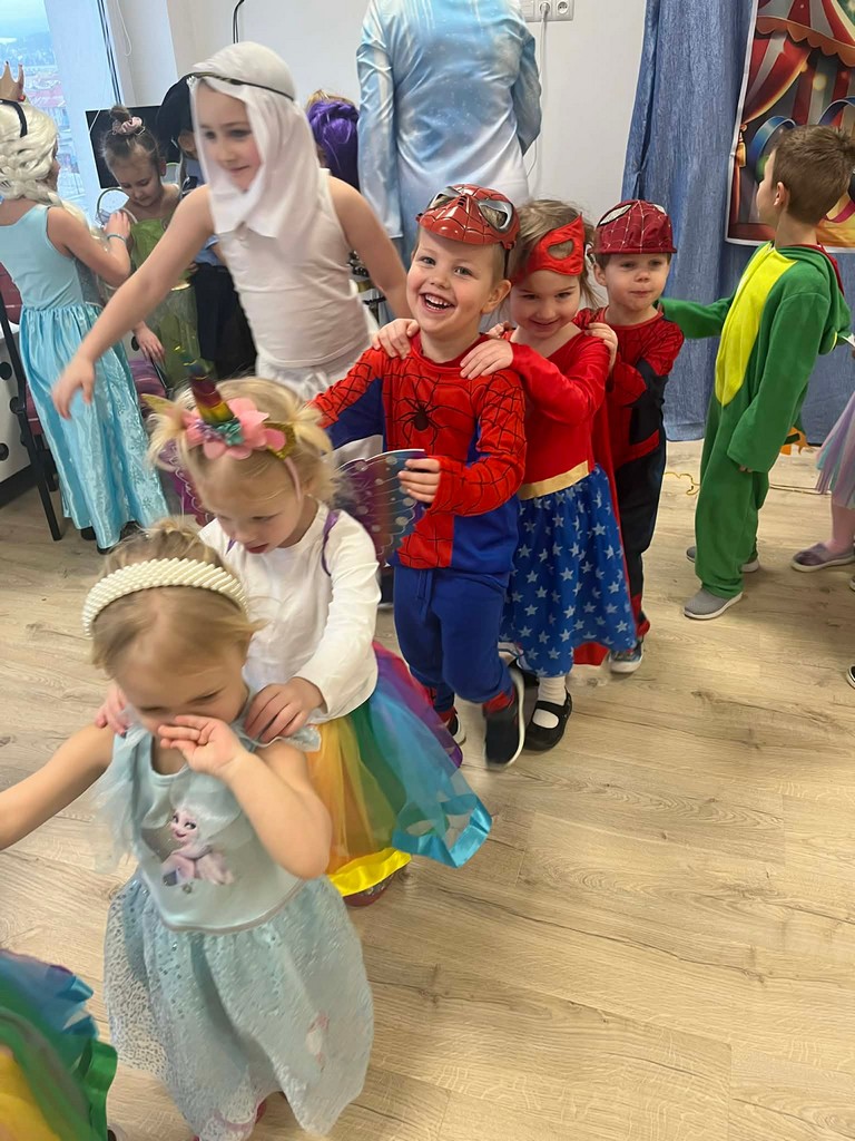 30 stycznia w naszym przedszkolu odbył się bal karnawałowy. Dzieci wcieliły się w różne postacie bajkowe. Zamieniły się w królewny, księżniczki, wróżki, biedronki, spidermanów, piratów, strażaków czy policjantów. Przebierańcy świetnie bawili się, uczestnicząc we wspólnych zabawach, a skoczna i rytmiczna muzyka zachęcała do tańca. Wszystkim zabawom towarzyszył śmiech, radość i spontaniczna aktywność dzieci, a cały bal karnawałowy przebiegał w miłej, serdecznej atmosferze i dostarczył niezapomnianych wrażeń. W trakcie karnawałowych szaleństw był czas na słodką przekąskę, jak również na pamiątkowe zdjęcia.