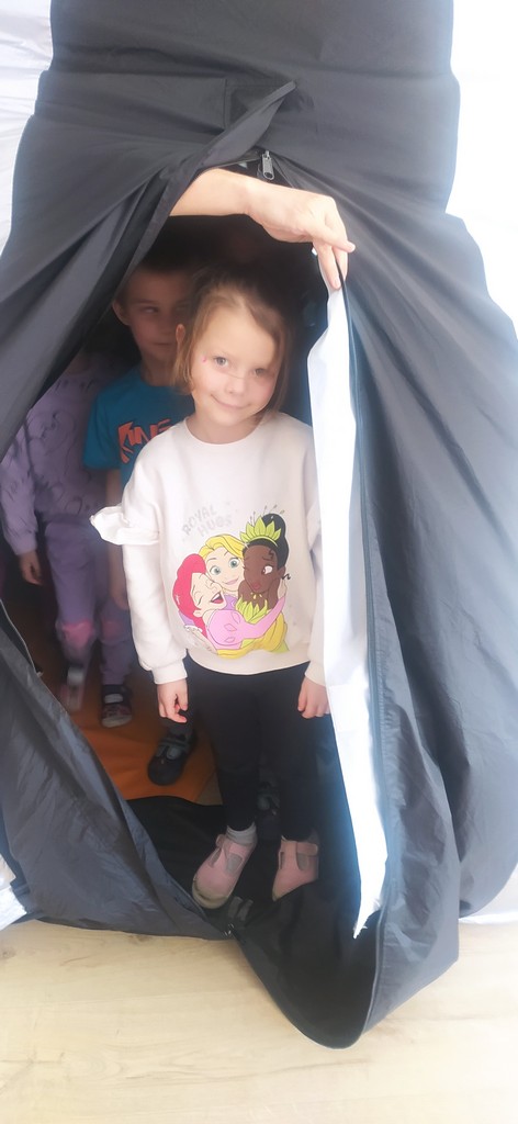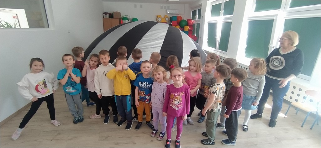 W piątek 6 marca przedszkolaki wzięły udział w seansie filmowym kina sferycznego. Obejrzeliśmy film pt. "Tajemnica nocy polarnej”- przedstawiający przygody pingwina Jamesa i misia Vladimira, którzy badają przyczyny długich nocy na biegunach. Na półkolistym ekranie, który nas otaczał mieliśmy okazję zobaczyć jak bohaterowie budują obserwatorium i statek kosmiczny, aby zrozumieć zjawiska astronomiczne.