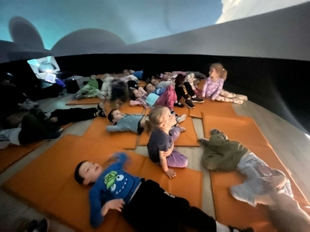 Seans w kinie sferycznym dostarczył dzieciom wielu emocji i nowych doświadczeń.