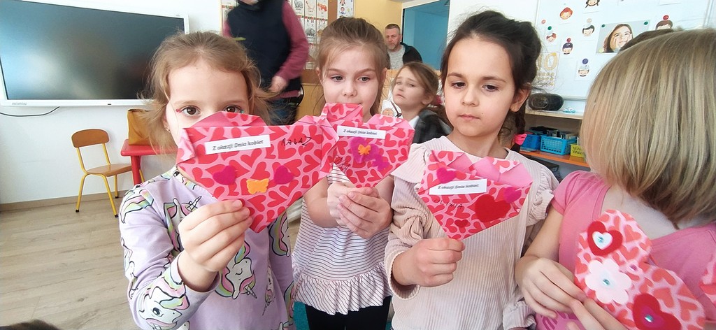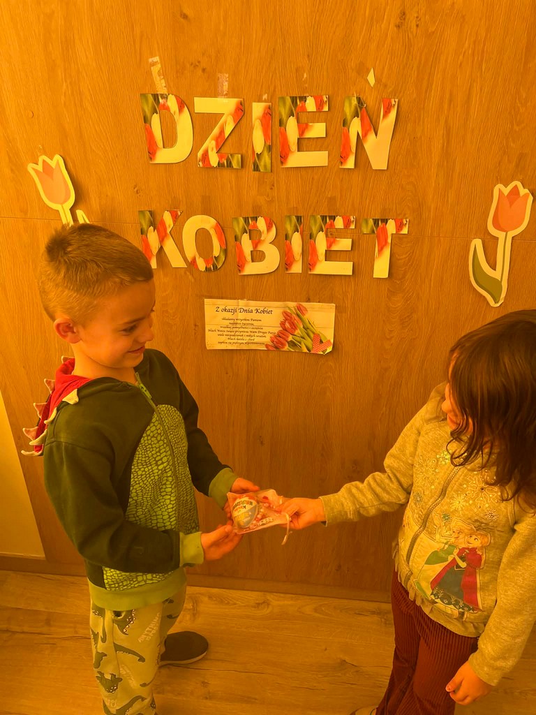 Dzień Kobiet to wyjątkowy dzień, ważny dla wszystkich kobiet, zarówno tych dużych, jak i małych. Chłopcy złożyli życzenia, tradycyjnie zaśpiewali swoim koleżankom uroczyste „100 lat”, i wręczyli piękne laurki i niespodzianki. Uśmiechnięte buzie przedszkolaków, a zwłaszcza dziewczynek świadczyły o miło spędzonym czasie. Święto Kobiet, które corocznie obchodzimy w naszym przedszkolu, to doskonały sposób do kształtowania u dzieci nawyku obdarowywania upominkami swoich najbliższych. Wszystkie dziewczynki, te małe i duże dziękują chłopcom za piękne życzenia.
