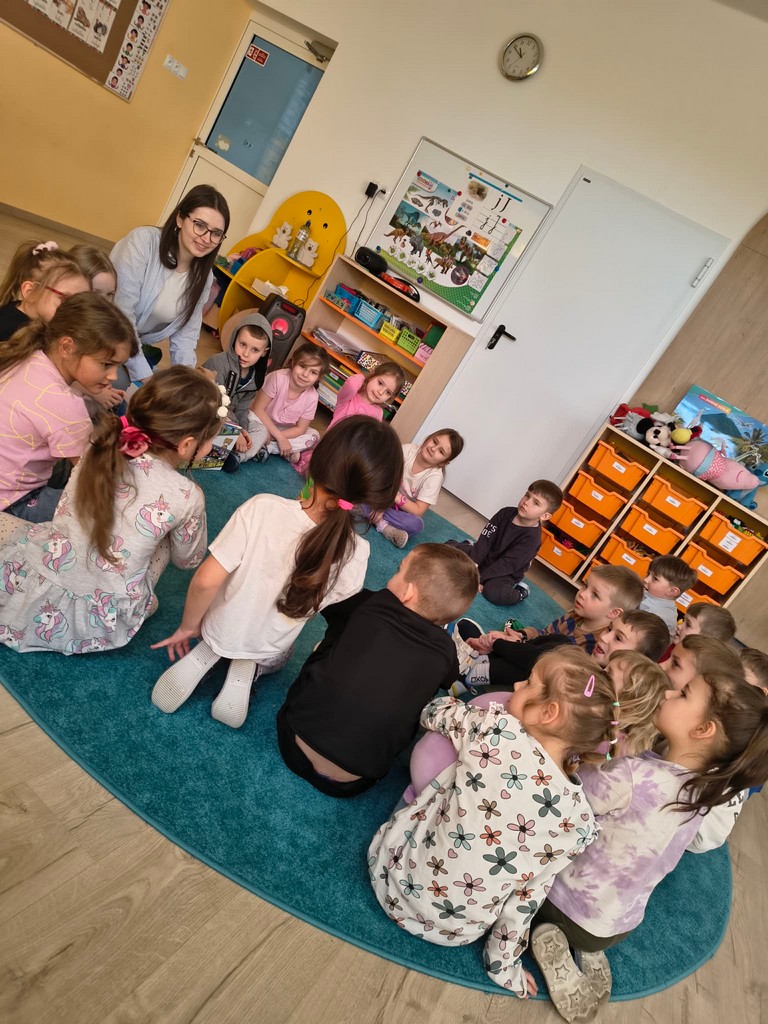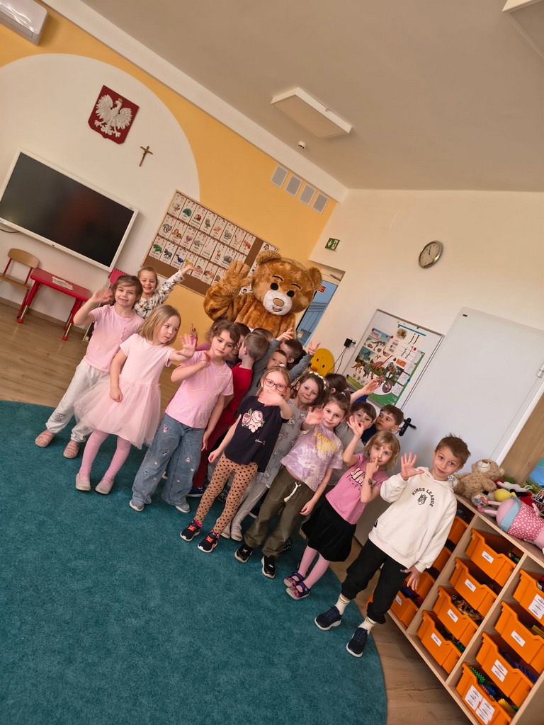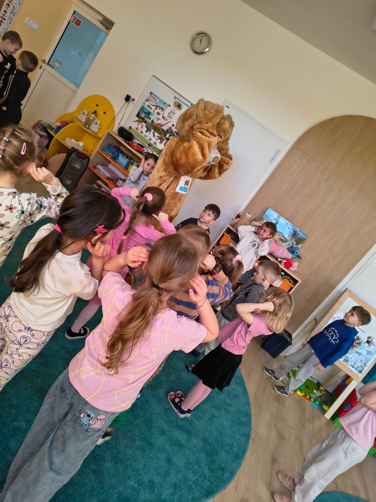 Dzieci z dużym zainteresowaniem brały w niej udział i chętnie powtarzały nowe słówka. Na zakończenie Miś Teddy podziękował dzieciom za wspólną zabawę i zachęcił do dalszej nauki języka angielskiego.