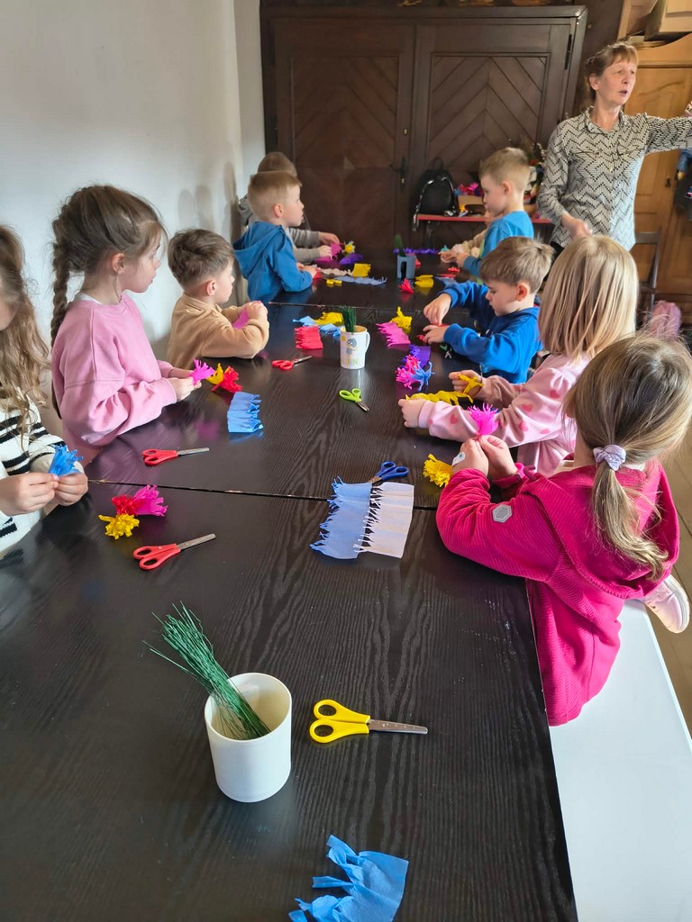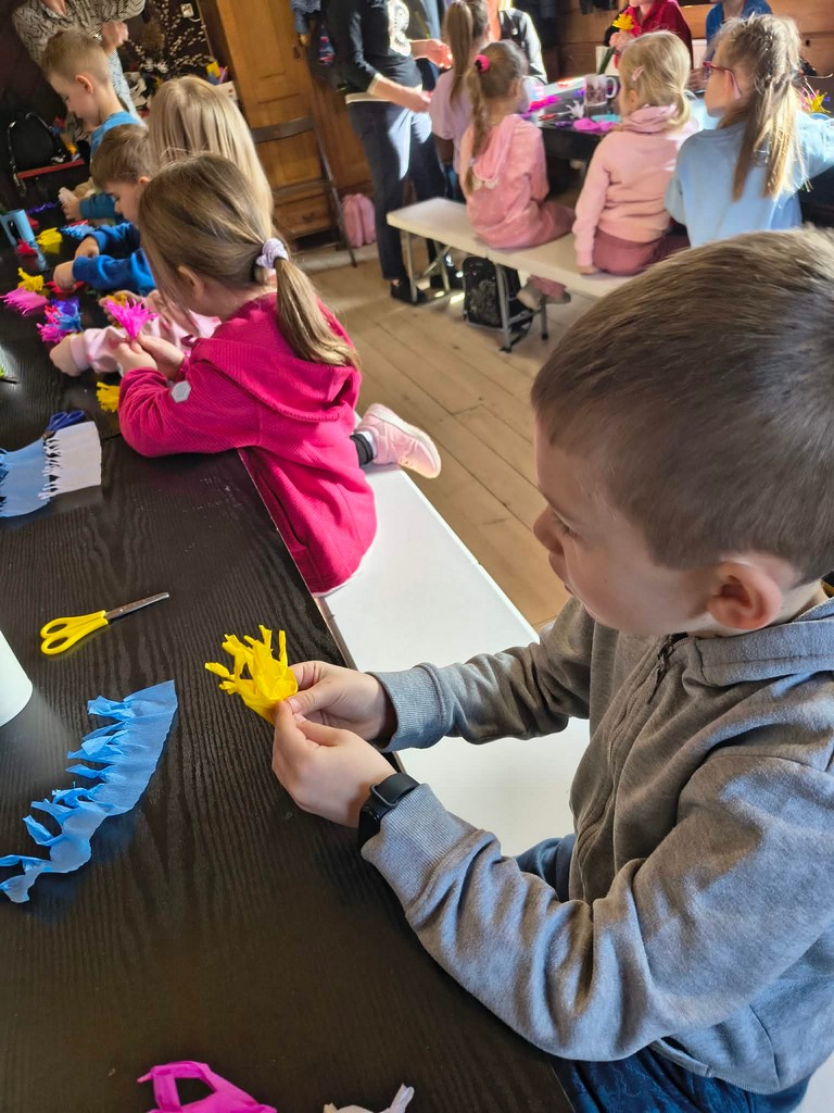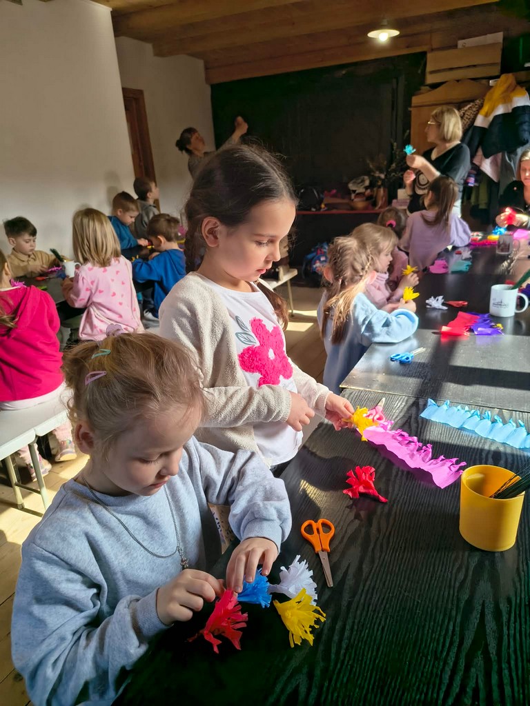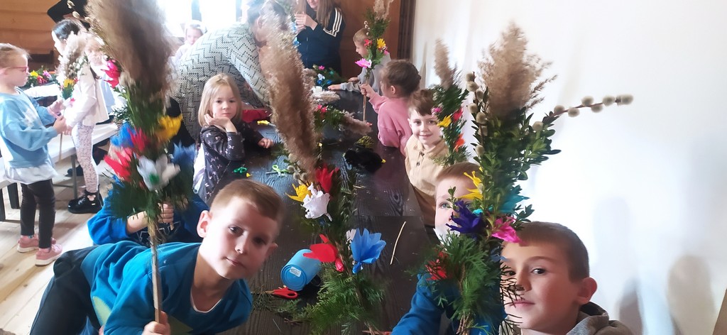 Z okazji nadchodzących Świąt Wielkanocnych przedszkolaki z grupy 5,6 latków wybrały się do Skansenu Wsi Pogórzańskiej w Szymbarku na warsztaty wyrobu palm wielkanocnych. Celem zajęć było przybliżenie tradycji Świąt Wielkanocnych, doskonalenie umiejętności współpracy, rozwijanie poczucia estetyzmu i rozbudzanie wyobraźni. Podczas warsztatów każdy uczestnik wykonał tradycyjną palmę wielkanocną z bukszpanu, trzciny, gałązek bazi oraz kwiatów. Na zajęciach panowała miła, radosna atmosfera. Po warsztatach przedszkolaki zwiedzili skansen oraz obejrzeli tradycyjne marzanny, które brały udział w konkursie „Małopolska Marzanna”.