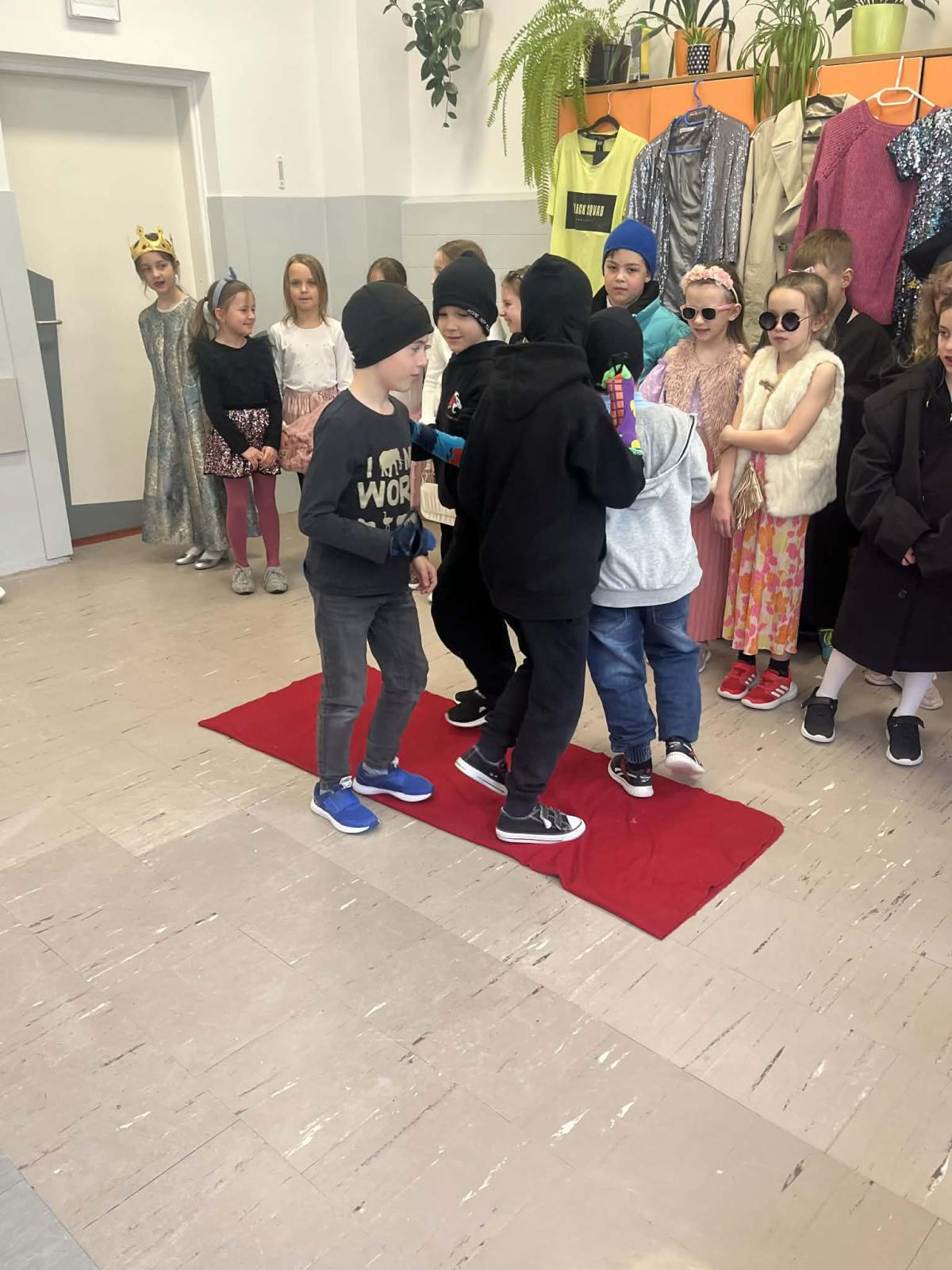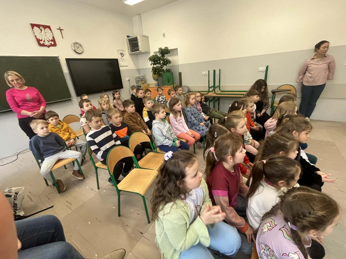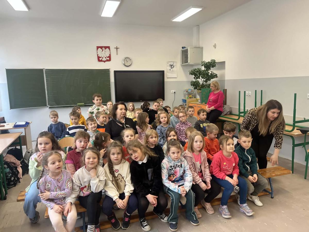 Nauczyciele dbają o współpracę i integrację dzieci przedszkolnych z uczniami szkolnymi. Już w krótce dzieci spotkają się na szkolnym korytarzu. Wczoraj najstarsze grupy przedszkolne odwiedziły szkołę i miały okazję zobaczyć przedstawienie w wykonaniu klasy II. Dziś klasa I i II przybyły do przedszkola, aby zobaczyć jak występują ich młodsi koledzy. Spotkania te zakończyły się sesją zdjęciową z aktorami.