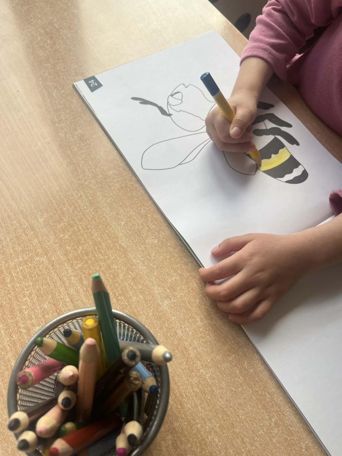 W 22 tygodniu projektu realizowaliśmy temat „Bzyk,bzyk”. Dzieciaki zapoznały się ze słówkiem „bee”. Przez cały tydzień dzieci osłuchiwały się z piosenką „Buzzing be”. Przeliczały pszczółki po angielsku utrwalając wyrażenie „Let’s count”. Maluszki wykonały piękne pszczółki, a średniaczki wykolorowały pszczółki w swoich kartach pracy. Na zajęciach tanecznych zatańczyły do piosenki „Buzzy, Buzzy Bees”. Takie małe dzieci, a tak dużo pracy wykonały w tym tygodniu. Przypominajka dla rodziców :Rodzicu wejdź na platformę Bilingual Future i włącz swojemu dziecku piosenkę Buzzing Bee. Posłuchajcie i zaśpiewajcie razem. See you.
